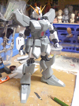 ニューガンダムを製作中です。脚をいじったら失敗してテンションがた落ちですが、頑張って作りま~す〓 香南模型サークル大塚